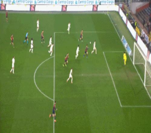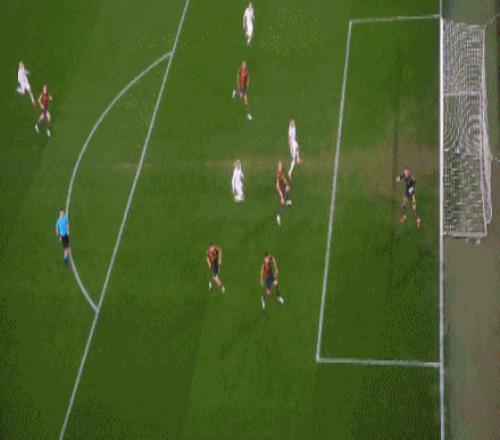 第35分鐘,倫施后點頭槌攻門,皮球偏出球門