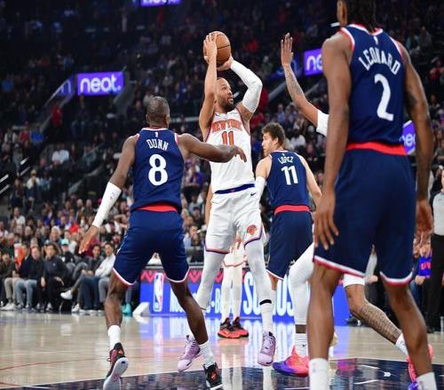 快船主場(chǎng)迎戰(zhàn)尼克斯,快船先發(fā):倫納德、瓊斯、洛佩斯、鄧恩、加蘭! 尼克斯先發(fā):阿努諾比、哈特、唐斯、布里奇斯、布倫森!
