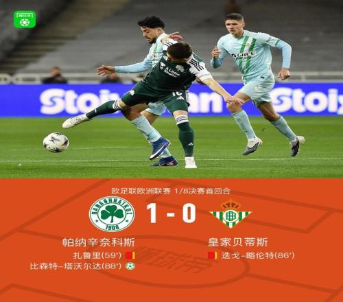 北京時(shí)間3月13日歐足聯(lián)歐洲聯(lián)賽 1/8決賽首回合,帕納辛奈科斯對(duì)陣皇家貝蒂斯。下半場(chǎng)扎魯里兩黃一紅被罰離場(chǎng),希維德?tīng)査乖禳c(diǎn),塔沃爾達(dá)點(diǎn)射打入制勝球,迭戈-略倫特兩黃一紅被罰離場(chǎng)。最終比分帕納辛奈科斯 1-0 皇家貝蒂斯。