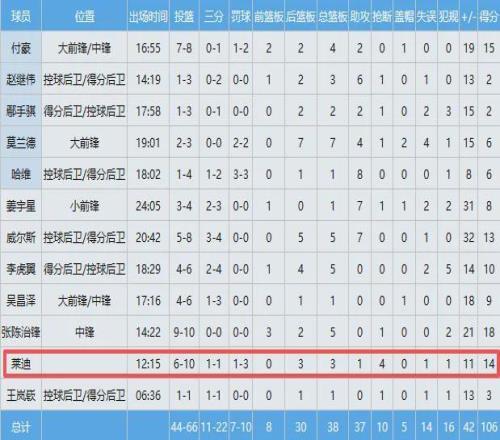 遼籃數(shù)據(jù)一覽:張陳治鋒18分5板、付豪15分4板、新外援萊迪14分3板1助4斷、威爾斯13分5板6助、李虎翼10分、吳昌澤9分、姜宇星8分7助、莫蘭德6分7板4助2帽、哈維6分8助、王嵐嵚趙繼偉鄢手騏合砍7分。