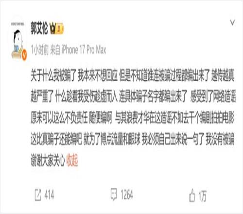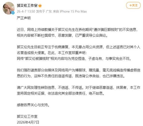 對此,郭艾倫發(fā)文辟謠了