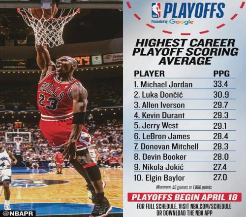 季后賽場(chǎng)均得分榜出爐:?jiǎn)痰さ?、KD第4,庫(kù)里未進(jìn)前10,詹姆斯呢