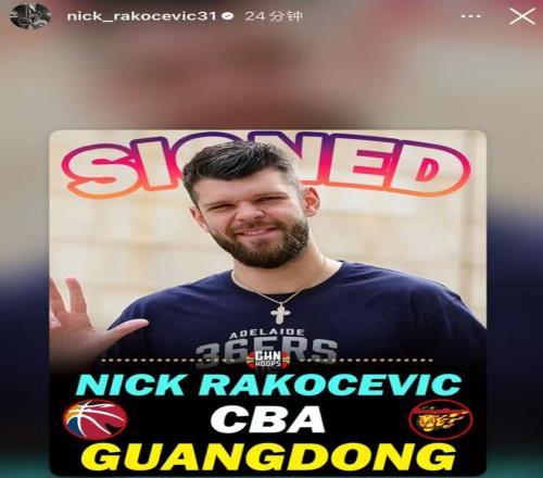 根據最新消息了解,在今天上午,拉科塞維奇已經抵達東莞,接下來,廣東隊只要為他進行CBA球員注冊,就可以代表廣東隊參加比賽。