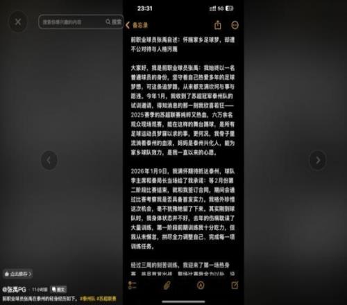 4月16日凌晨,前中超河北隊(duì)球員張禹在社媒發(fā)布長(zhǎng)文,稱在蘇超泰州隊(duì)試訓(xùn)時(shí)遭到了不公正的對(duì)待,還透露主教練對(duì)其辱罵、造謠、惡意侮辱。