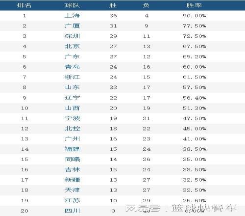 CBA積分榜最新排名出爐!廣東被踢出四強(qiáng):廣廈第2遼寧穩(wěn)居第9
