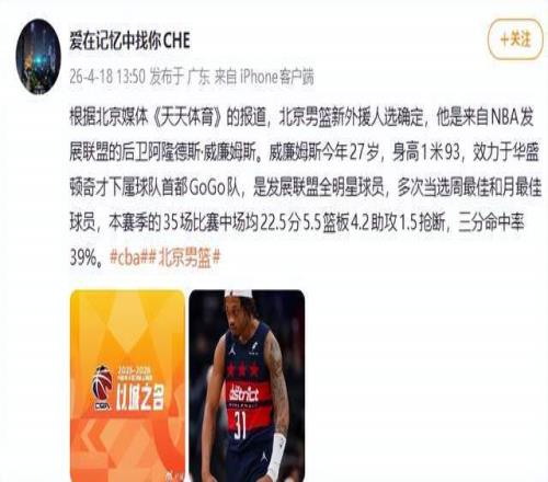 其技術特點鮮明:兼具突破終結、中遠距離投射與防守覆蓋能力,能從二號位防至五號位,攻防一體的屬性完美契合首鋼當前需求。此前球隊后場外援杰曼組織出色但得分能力有限,貝利則狀態(tài)起伏、投射失準,均未能承擔起關鍵球攻堅任務。威廉姆斯的加盟,將填補首鋼在“第一進攻點”上的長期空白。