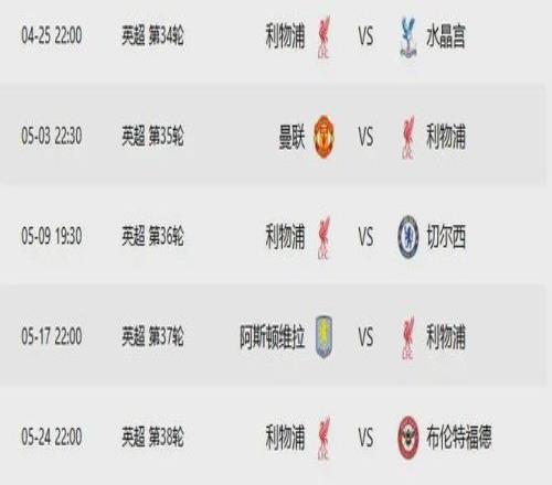 利物浦最后五輪的對手是:水晶宮(客)、曼聯(lián)(主)、切爾西(客)、維拉(主)、紐卡斯爾(客)。五場比賽四個客場,三個對手是爭奪歐戰(zhàn)資格的直接競爭者。