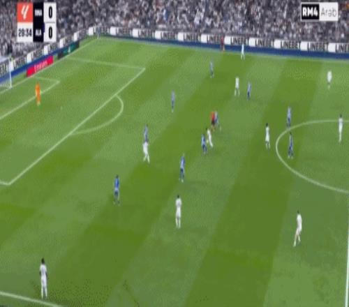 第8分鐘,姆巴佩左路內(nèi)切沒(méi)有起腳機(jī)會(huì),隨后勉強(qiáng)橫傳,貝林厄姆晃開角度起腳勁射,擊中阿拉維斯后衛(wèi)產(chǎn)生折射偏出。