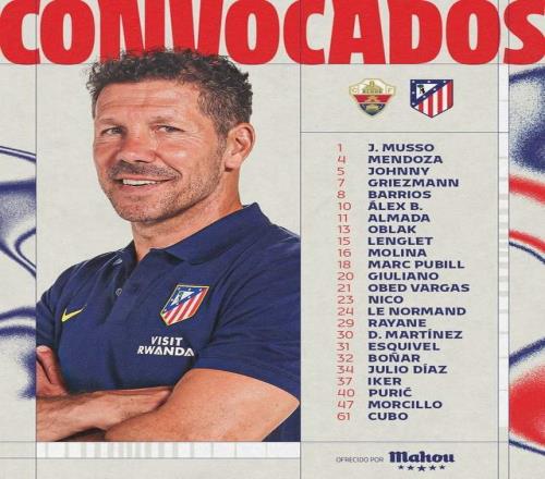 據(jù)報道,馬競公布了西甲第33輪客戰(zhàn)埃爾切的大名單。魯杰里、希門尼斯、漢茨科、馬科斯-略倫特、科克、瑟洛特、盧克曼以及朱利安-阿爾瓦雷斯(小蜘蛛)共8人缺陣。