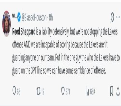 在火箭與湖人的比賽后,有球迷詢問:有人能給我解釋一下,為什么謝潑德幾乎沒怎么打嗎?