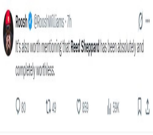 休媒Roosh:此外我想說的是,火箭用三號(hào)簽選中的里德-謝潑德是一個(gè)毫無價(jià)值的人。