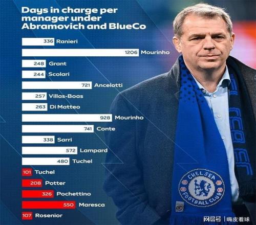 從兩個(gè)杯賽的首秀開(kāi)始,羅塞尼爾一共帶領(lǐng)切爾西參加23場(chǎng)比賽,足足輸了10場(chǎng),成為30年來(lái),最快失利上雙的主帥。統(tǒng)計(jì)表明,阿布時(shí)期,不算臨時(shí)性質(zhì)的,切爾西主帥平均執(zhí)教時(shí)長(zhǎng)為528天,后阿布時(shí)期大幅下滑至258天。羅塞尼爾是最短的,只有短短的107天,13場(chǎng)聯(lián)賽場(chǎng)均1.3分,只比波特的場(chǎng)均1.27分,要稍微高一點(diǎn),排在倒數(shù)第二。