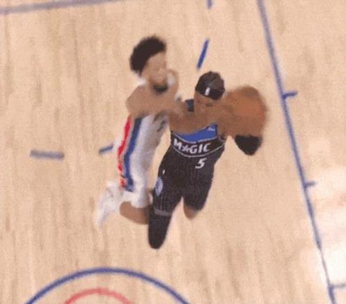 魔術(shù)狀元班凱羅反擊快下,活塞坎寧安追身送上蓋帽,一次狀元和狀元之間的直接對(duì)位。