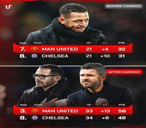 數(shù)據(jù)顯示,索帥轉(zhuǎn)正前,曼聯(lián)19場比賽豪取14勝;但他被官宣成為正式主帥后,曼聯(lián)最后10戰(zhàn)只有兩勝,卻輸了6場,最終無緣歐冠資格。現(xiàn)在,卡里克執(zhí)教前12場贏下8場,球隊有機(jī)會重返歐冠,但俱樂部計劃等到賽季結(jié)束后再決定是否讓其留任。