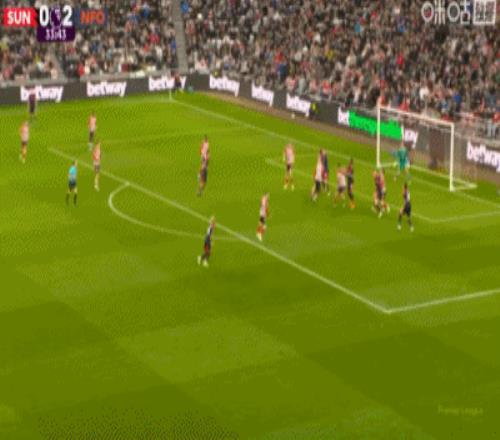 第37分鐘,熱蘇斯禁區(qū)后點(diǎn)凌空抽射破門,桑德蘭0-4諾丁漢森林