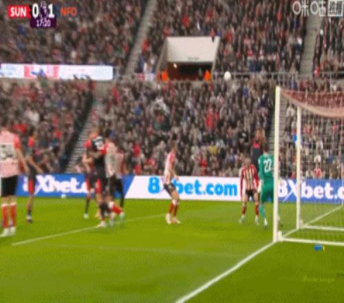 第17分鐘,休姆禁區(qū)頭球頂進(jìn)自家球門,桑德蘭0-1諾丁漢森林