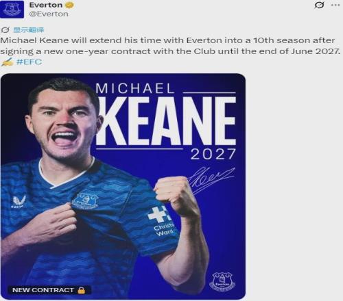 官方:埃弗頓宣布邁克爾-基恩續(xù)簽了一年合同,這名中衛(wèi)的新合同2027年到期。