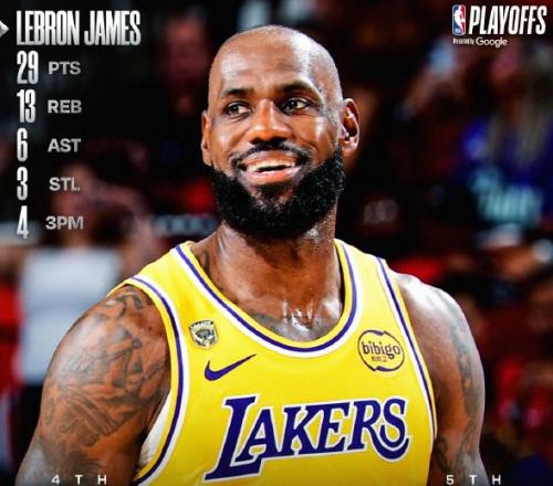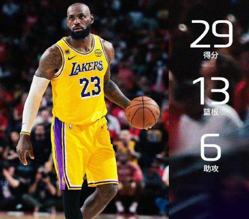 4月25日,NBA季后賽首輪G3,湖人112比108擊敗火箭,首輪大比分3比0領(lǐng)先火箭,本場比賽詹姆斯出戰(zhàn)45分鐘,全場22投10中,三分球9投4中,貢獻(xiàn)29分13籃板6助攻3搶斷。