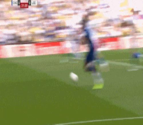 15’ 利茲聯傳切配合撕穿藍軍防線,阿倫森的單刀打門被桑切斯用腳擋出底線;