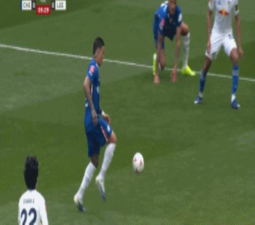 15’ 利茲聯(lián)傳切配合撕穿藍(lán)軍防線,阿倫森的單刀打門被桑切斯用腳擋出底線;
