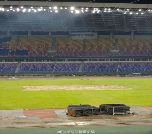 變菜地了,網(wǎng)傳圖片顯示浙江隊(duì)主場(chǎng)黃龍?bào)w育場(chǎng)中出現(xiàn)“大坑”